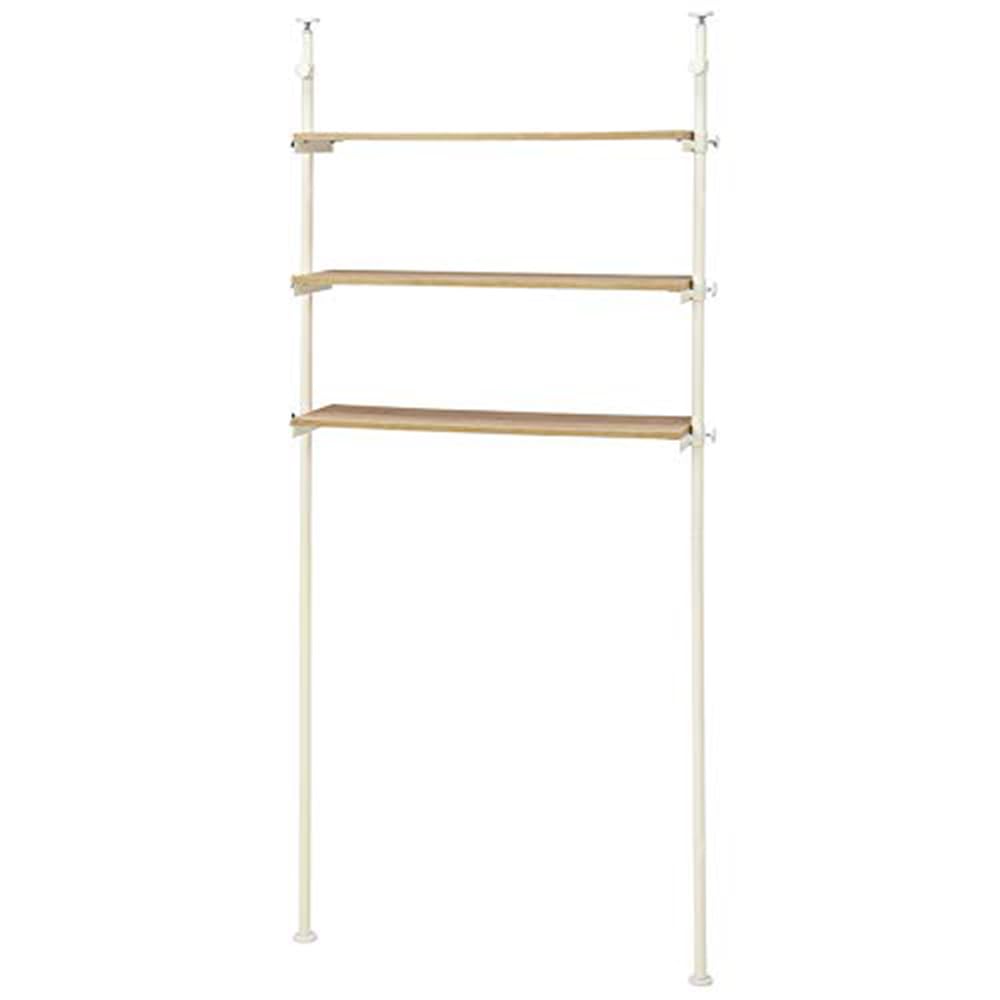 ■萩原(Hagihara) ランドリー収納 洗濯機ラック ランドリー 突っ張り 【高さ無段階調節】 木目調 幅90 ホワイト KTR-3154WH
