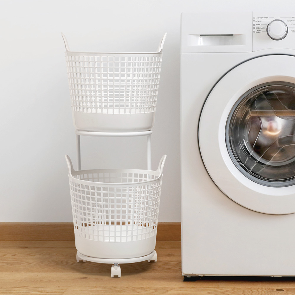 ■ランドリーバスケット 2段 洗濯カゴ 丸型 通販 キャスター付き ランドリーワゴン 洗濯かご ワゴン 脱衣かご 脱衣所 ランドリー 収納かご
