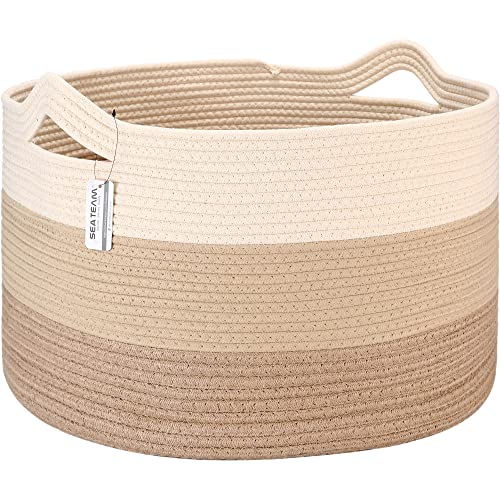 ■Sea Team ランドリー収納 コットンロープバスケット 収納かごバ スケット 持ち手付き ランドリー ランドリーバスケット 収納ボックス 洗