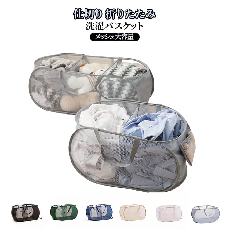 ■3仕切り 折りたためる 折りたたみ洗濯かご 2仕切り 洗濯カゴ ランドリーバッグ 折りたたみ 洗濯物入れ 洗濯籠 ランドリー バスケット 2仕