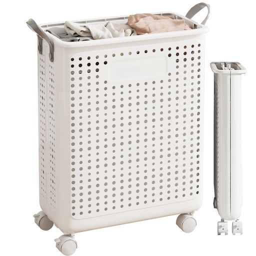 ■LONGYI 洗濯かご ランドリー バスケット 折り畳み スリム 洗濯カゴ 折りたたみ 洗濯籠 折畳み キャスター付き 取っ手付き 大容量 ランド