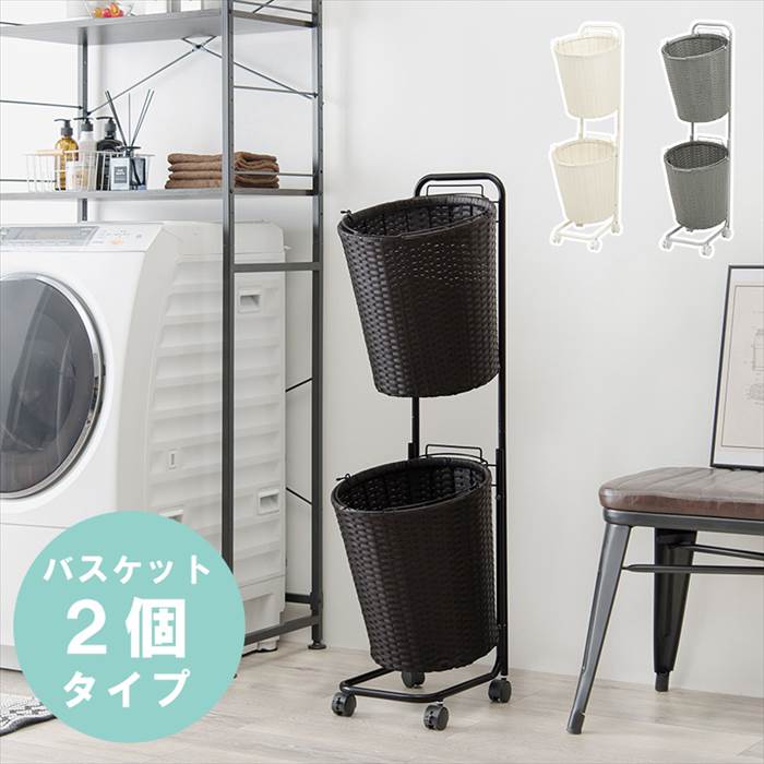 ■ランドリーラック 通販 RAN-2431 ランドリー収納 ランドリー ラック ランドリーバスケット カゴ 2個 脱衣かご 2段 キャスター付き 水回り