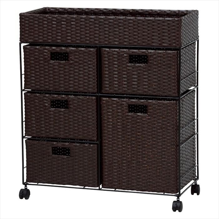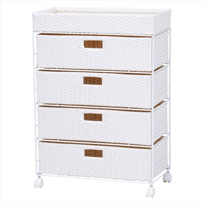 ■ランドリーチェスト 4段 幅50cm 高さ85cm キャスター付 引出し スチール ポリエチレン ( ラタン調 ランドリー チェスト ラック 防水 ア