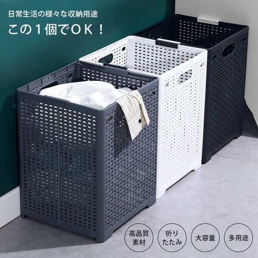 ■ランドリー バスケット 洗濯カゴ 折り畳み式 大容量 おしゃれ 取っ手付き ランドリー収納 ボックス ごみ箱 省スベース 48L (グレーA)