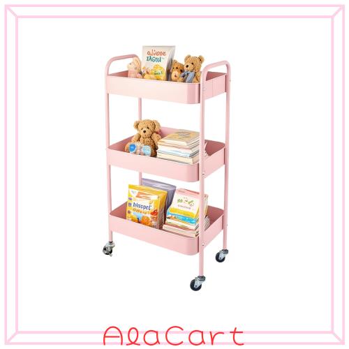 ■Ufriandz キッチンワゴン 収納ワゴン ピンク 3段建て 移動実用カートは キッチン オフィス 寝室 ランドリー 狭いスペース, 簡単組み立て