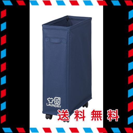■パール金属 ランドリー バスケット 洗濯 かご 34L スリム キャスター付 ダークブルー N-7891