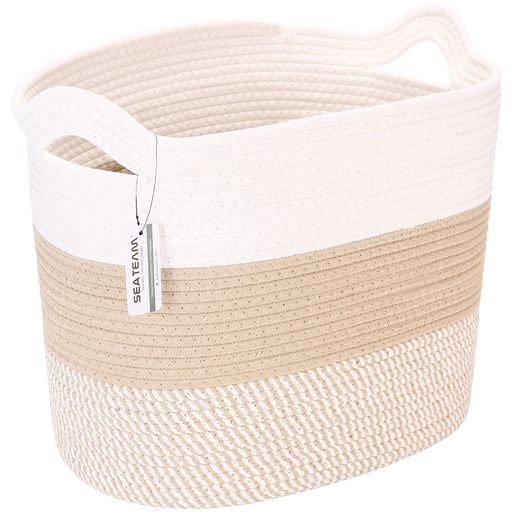 ■SEA TEAM 大きいサイズ 収納バスケット 洗濯かご ランドリー ロープバスケッ コットンロープ 持ち手付き ランドリー ナチュラル 赤ちゃん