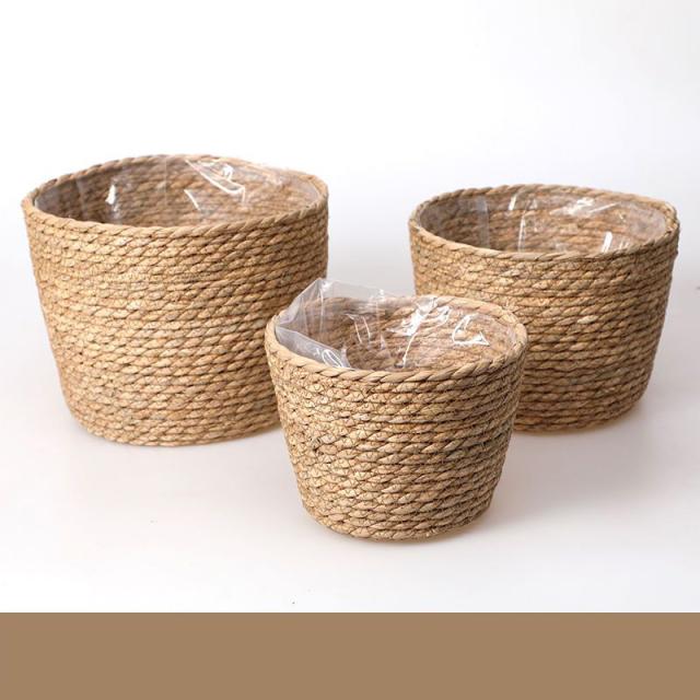 送料無料 バスケット プランター 鉢カバー 植木鉢 ボックス 三個セット 収納カゴ ゴミ箱 ダストボックス かご 衣類 ランドリー BOX 天然素材 タイ 雑貨 アジアン インテリア