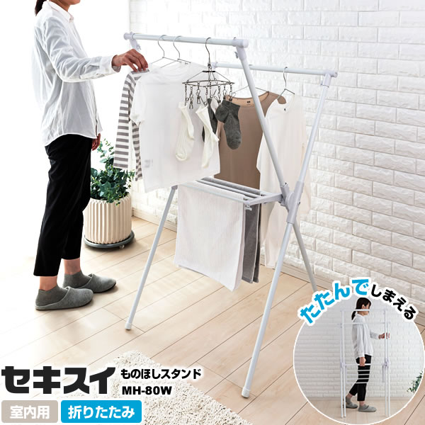 ■物干しスタンド 室内 セキスイ タオルバー付き ものほしスタンド ホワイト MH-80W | 洗濯物干し 白 ランドリー スタンド 屋内 部屋干し