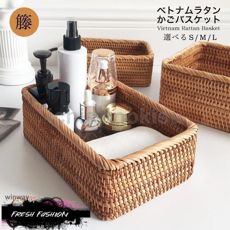 籐かご ラタン おしゃれ ランドリーバスケット ベトナム 洗濯カゴ 洗濯かご 収納ボックス 収納カゴ 籠 ランドリー 収納バスケット 編み 小物入れ S M L