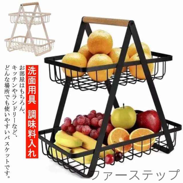 バスケット 2段 収納ラック ワイヤーバスケット 大容量 収納 かご カゴ キッチンバスケット キッチンカゴ 調味料入れ 食器乾燥 小物入れ フルーツバスケット ランドリーバスケット 洗濯かご ワイヤーラック 洗面用具 台所用品 持ち手付き おしゃれ 北欧 ウッド 送料無料