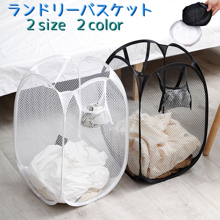 ■ランドリーバスケット 洗濯カゴ 折りたたみ コンパクト 持ち手付き メッシュ 軽量 通気性抜群 持ち運び 洗濯物 収納 旅行 携