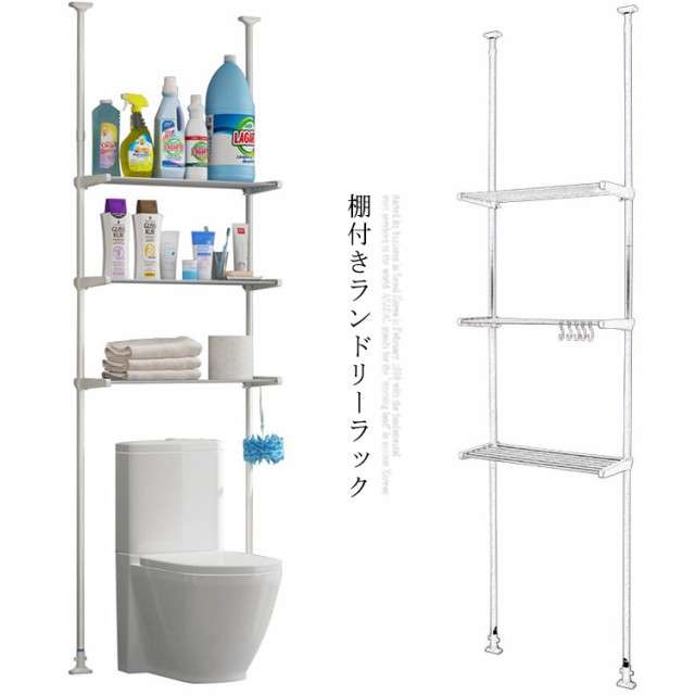 ■洗濯機ラック おしゃれ 突っ張り つっぱり 収納 ランドリーラック 白 黒 洗濯機上 サニタリー収納 パイプラック 棚 ラック アイアン スチ