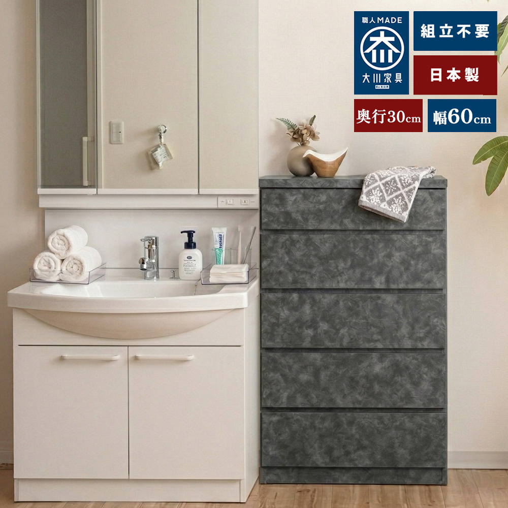 ■薄型チェスト 幅60cm 5段 脱衣所収納 奥行30cm 【 薄型 チェスト スリム 収納 棚 引き出し 引出し 箪笥 タンス たんす ストッパー付き