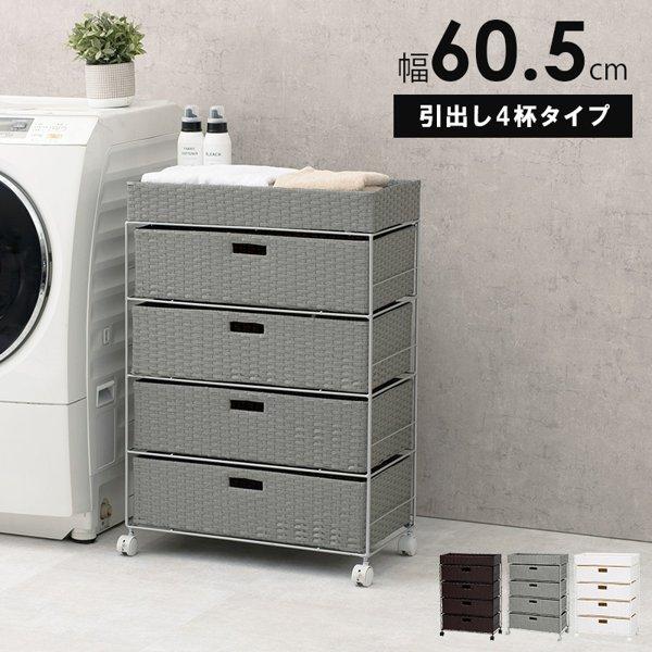 ■ランドリーラック 7杯 引き出し 幅70.5cm ラタン調 完成品 収納 かご カゴ 籠 棚 すき間収納 スリム ランドリーバスケット キャスター ラ