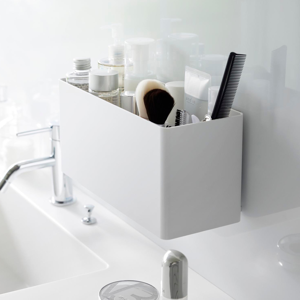 ■山崎実業 MIST フィルムフックストレージバスケット ミスト ( ミストシリーズ 収納 フィルムフック 壁面収納 収納ケース ストレージボッ