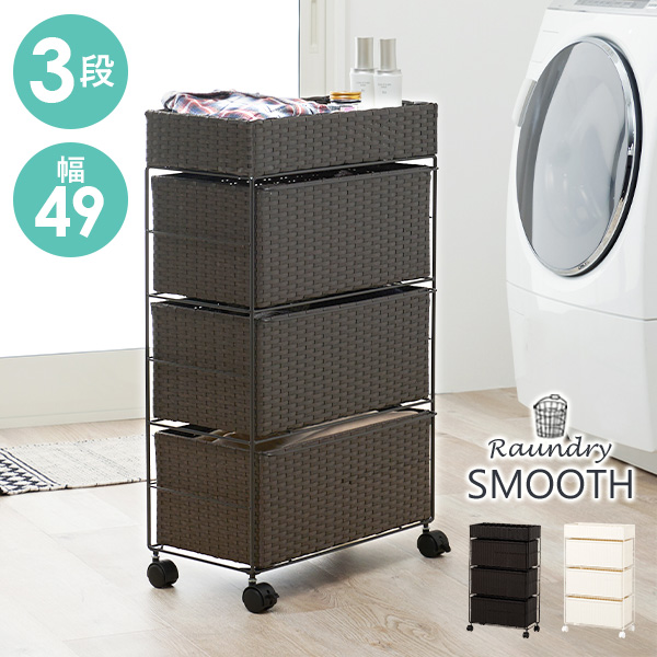■ランドリーラック 薄型 3段 幅49cm ランドリーチェスト 収納 ランドリーバスケット かご 大容量 おしゃれ キャスター 洗濯かご 脱衣かご
