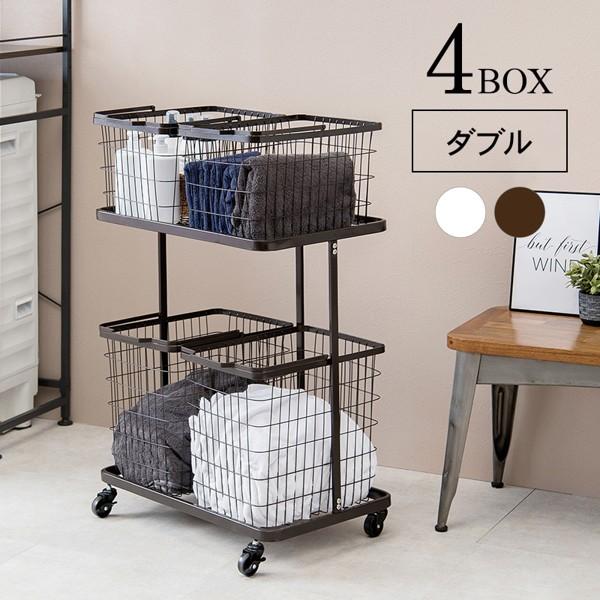 ■ランドリーラック おしゃれ バスケット かご カゴ 2段 ダブル 大 大きめ 大きい キャスター付き ランドリー収納 白 アイアン 収納 洗面所