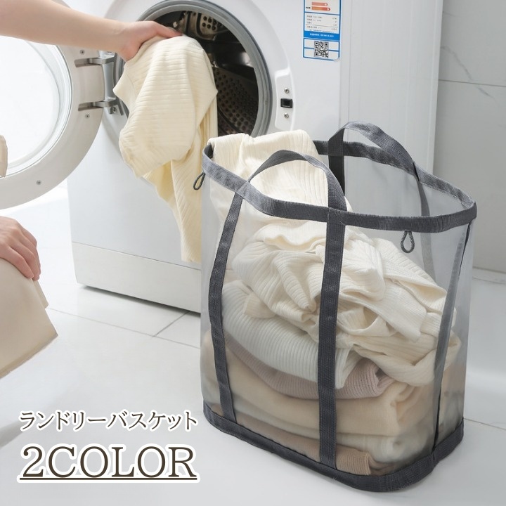 ■ランドリーバスケット 洗濯用品 大容量 バッグ型 折り畳み 吊るす 掛ける 壁掛け メッシュ ランドリーボックス 洗濯かご 収納