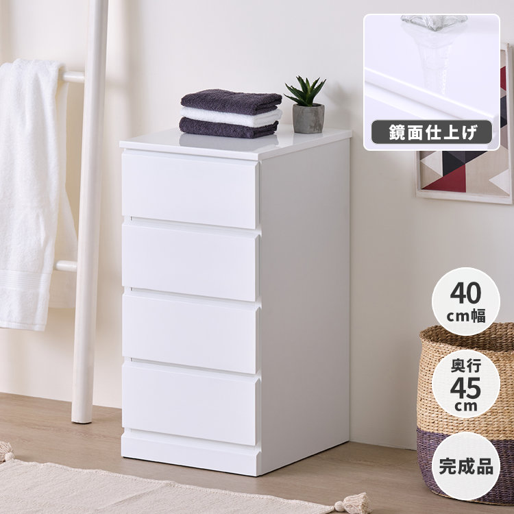 ■幅40 奥行45 4段 完成品 チェスト タンス たんす 箪笥 ランドリー収納 洗面所 バスルーム サニタリー 衣類 タオル 洋服 収納 引き出し ス