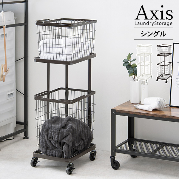 ■ランドリーバスケット キャスター ランドリーワゴン おしゃれ 洗濯カゴ 大容量 収納 2杯 シングル ランドリー収納 アクシス ランドリ