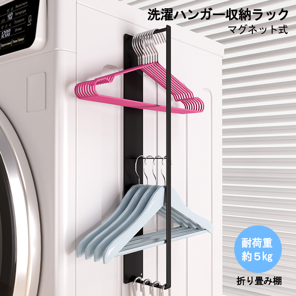 マグネット 洗濯ハンガー収納ラック プレート ハンガー 収納 洗濯機横 簡単取付 フック付き 浴室 キッチンお風呂