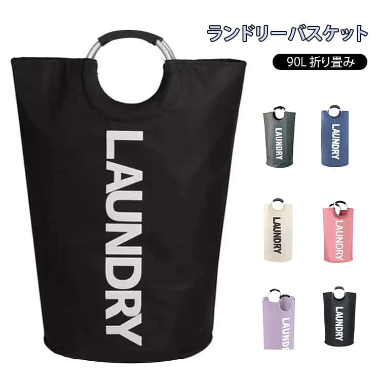 ■ランドリーバスケット 折りたたみ 大容量 約80L 持ち手付き ランドリーバッグ 丸型 洗濯物入れ 収納 北欧 スリム 洗濯かご 洗濯カゴ コン
