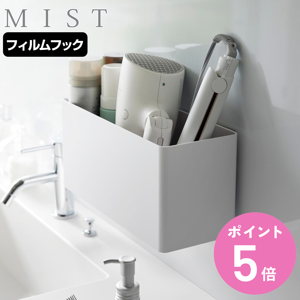 ■山崎実業 MIST フィルムフックストレージバスケット ミスト ( ミストシリーズ 収納 フィルムフック 壁面収納 収納ケース ストレージボッ