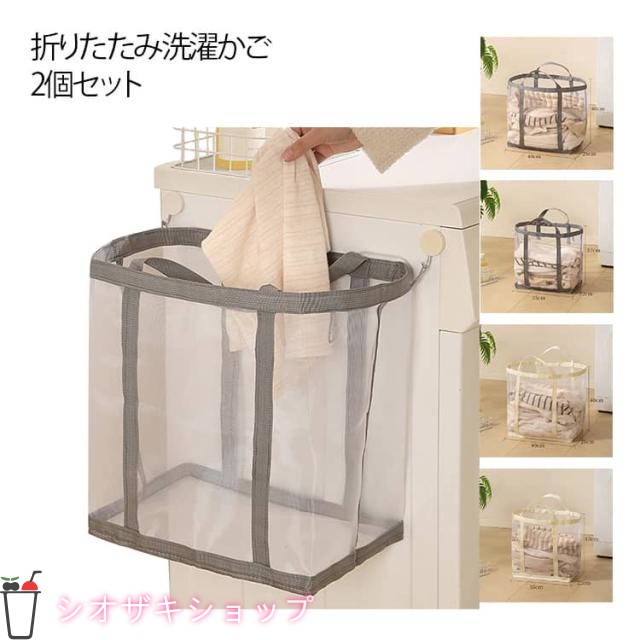 ■収納 折りたたみ洗濯かご 2個セット ランドリーバスケット 軽量 省スペース 自立 折りたためる メッシュ 洗濯物入れ 洗濯かご ランドリー