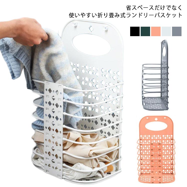 ■ランドス 折りたたみ スリム プラスチック 北欧 大容量 ランドリー 洗濯かご 衣類 収納 袋 隙間収納 バスケット 蒸れにくい シンプル お