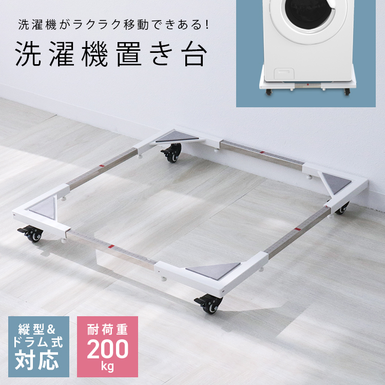 ■洗濯機置き台 洗濯機 台 キャスター 伸縮式 耐荷重200kg ランドリー 収納 ドラム式洗濯機 洗濯機の台 ドラム式対応 洗濯機置台 台車 クッ