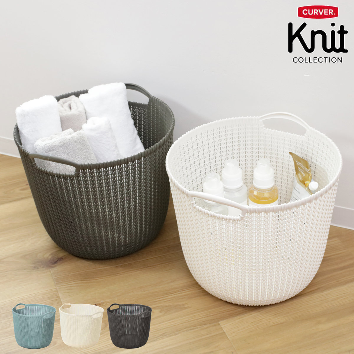 ■ランドリーバスケット CURVER ニットラウンドバスケット 30L ( カーバー バスケット ランドリー 持ち手付 洗濯 脱衣かご 洗濯かご 収納