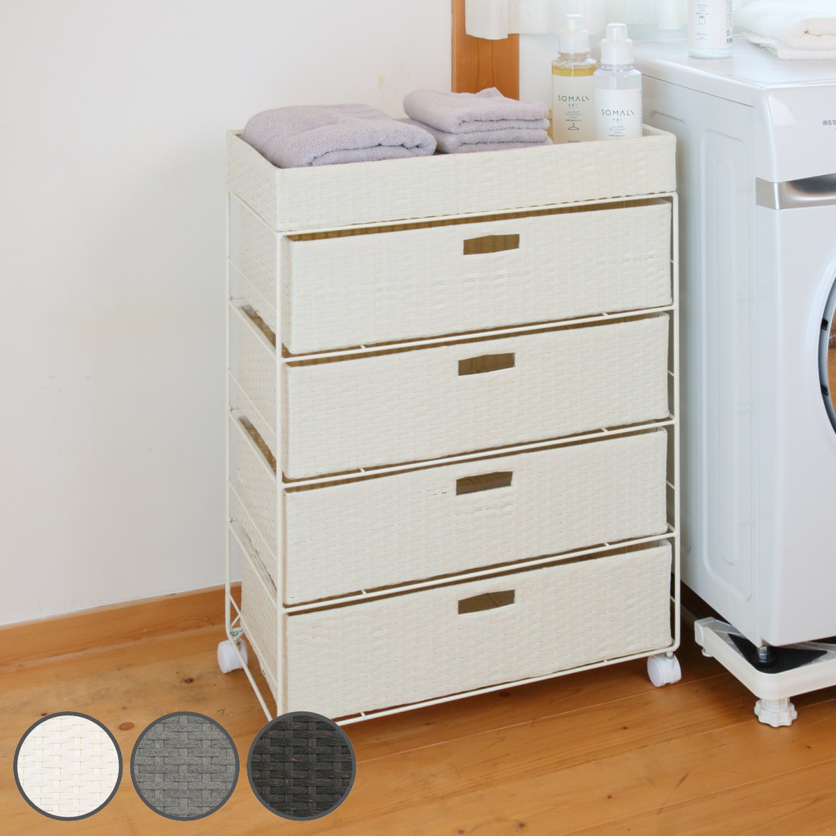 ■ランドリーチェスト 幅60.5cm 4段 引出し キャスター付 完成品 ( ラタン調 ランドリー チェスト ラック 防水 撥水 収納 かご ラタン風
