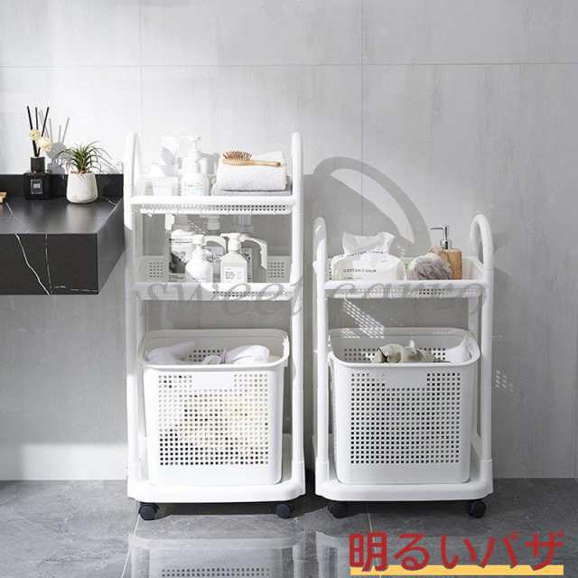 ■ランドリーラック 3段 キャスター付き ( ラック ランドリー バスケット 洗濯かご 洗濯物 脱衣かご 分別 洗濯物入れ 収納 棚 キャスター