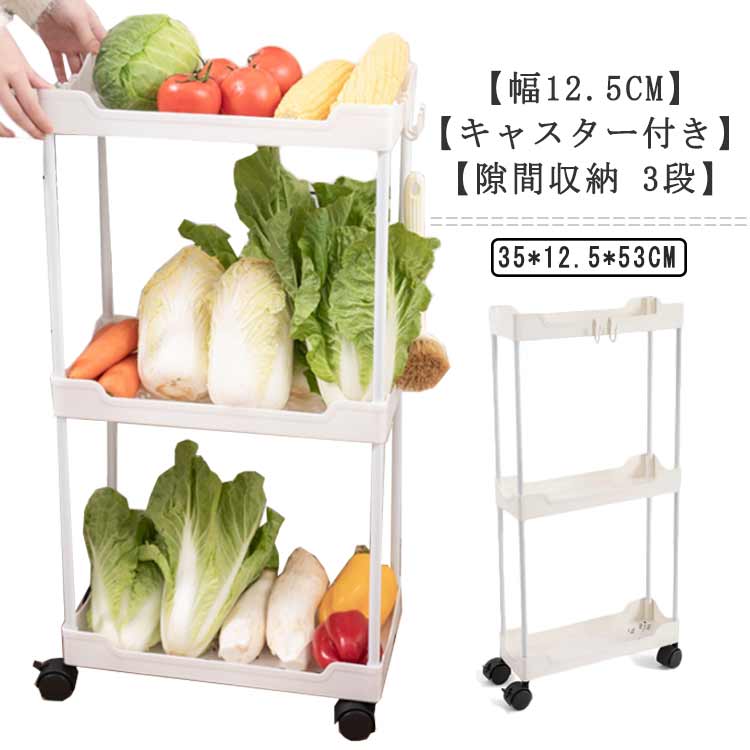 ■隙間収納 12.5cm 幅 3段 キャスター付き キッチンワゴン スリム 収納 洗面所 すき間収納 ランドリー ラック 薄型 すき間 キッチン収納 ワ