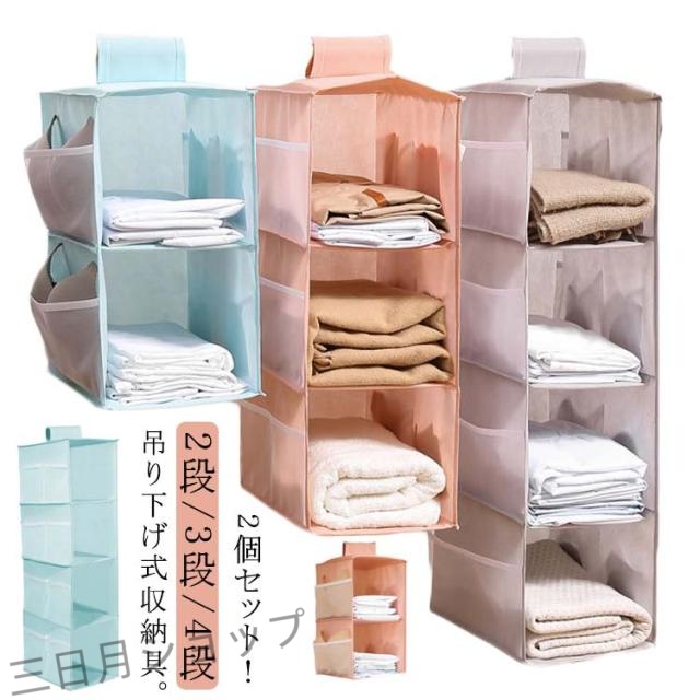 折りたたみ ポケット付き 吊り下げ収納 衣類収納 吊り下げ式 2個セット 薄型 収納 下着 2段 タオル 帽子 3段 4段 ランドリー ラック 吊下 コンパクト タオル サイドポケット 洗える ハンカチ 小物 ランドセル入れ おもちゃ 洗面所 クローゼット