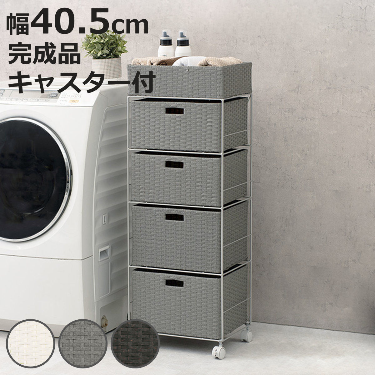 ■ランドリーチェスト 幅40.5cm 4段 引出し キャスター付 完成品 ( ラタン調 ランドリー チェスト ラック 防水 撥水 収納 かご ラタン風