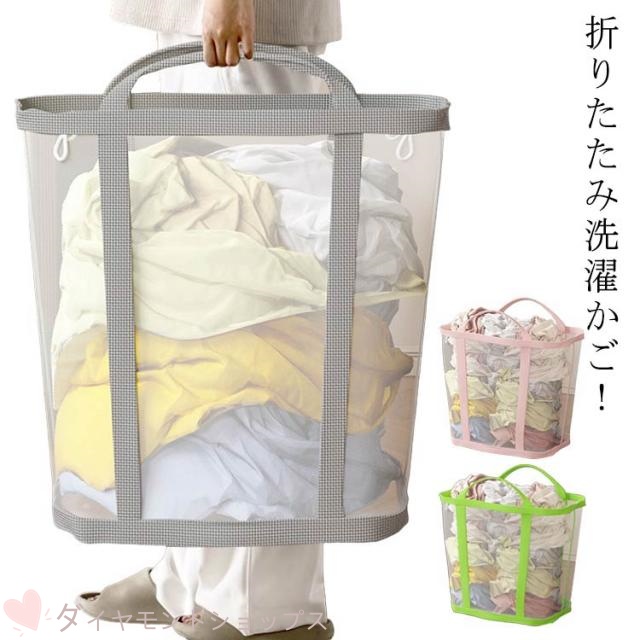 ランドリーバッグ 洗濯籠 洗濯カゴ 折りたたみ洗濯かご 洗濯かご 洗濯物入れ ランドリー 折りたたみ 折り畳み 収納 ランドリーバスケット メッシュ 大容量 おしゃれ バスケット 折りたためる 洗濯 軽量 たためる コンパクト 軽量 クリーニングバッグ 持ち手付き