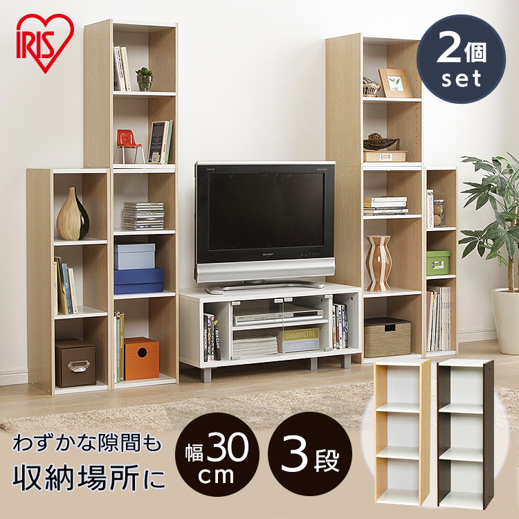 ■【2個】 収納棚 ラック スリム 幅30cm 奥行29cm 隙間収納 棚 3段 可動棚 キッチン 洗面所 ランドリー リビング 収納 縦横連結 収納ラック