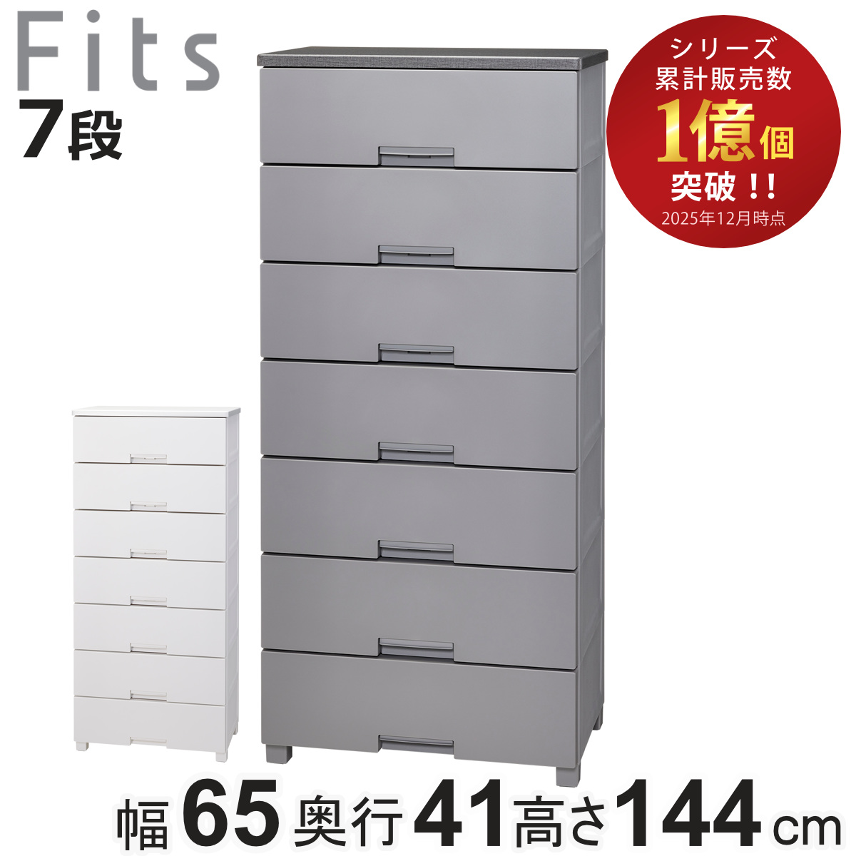■チェスト フィッツチェスト 6507 7段 Fits 幅65×奥行41×高さ144cm ( タンス 引き出し 収納 衣類収納 日本製 完成品 フィッツ プラスチ