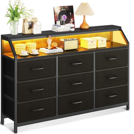 ■AODK タンス チェスト 衣裝ケース 収納ケース 衣装棚 洋服収納 LED付き 引き出し9杯付き 脱衣所 棚 衣類チェスト 洋服タンス 箪笥 木製天