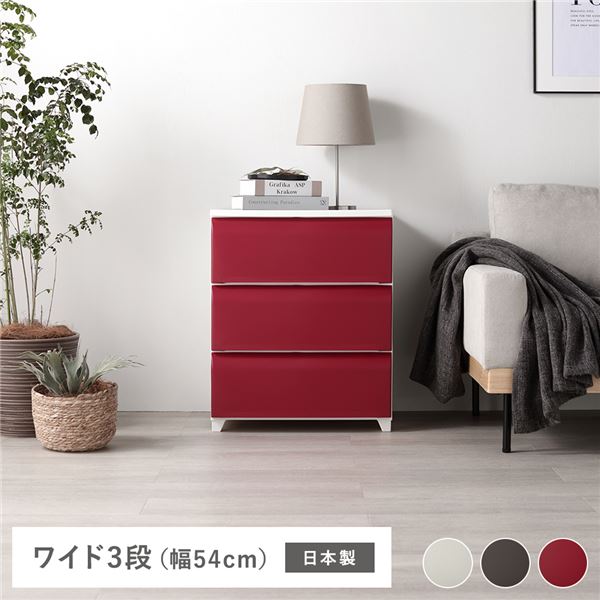 ■タンス ワイド 3段 約幅54cm レッド プラスチック製 脚付き 日本製 国産 ホコリが入りにくい チェスト キャビネット 衣類整理 収納 整理
