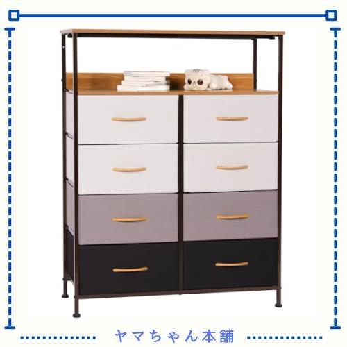 ◆商品名:LYNCOHOME 棚付き収納チェスト タンス ラック キャビネット 布製引き出し 衣類収納 リビング収納 低ホルム 4段8杯【幅80×奥行29×高さ10