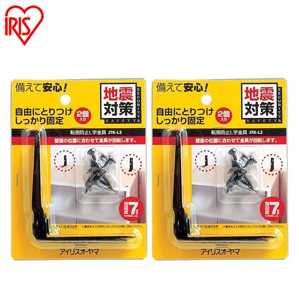 ■【2個セット】転倒防止金具 L字 JTK-L2 アイリスオーヤマ ストッパー 転倒防止用 金具 耐震 L字型 家具 たんす タンス 食器棚 転倒防止