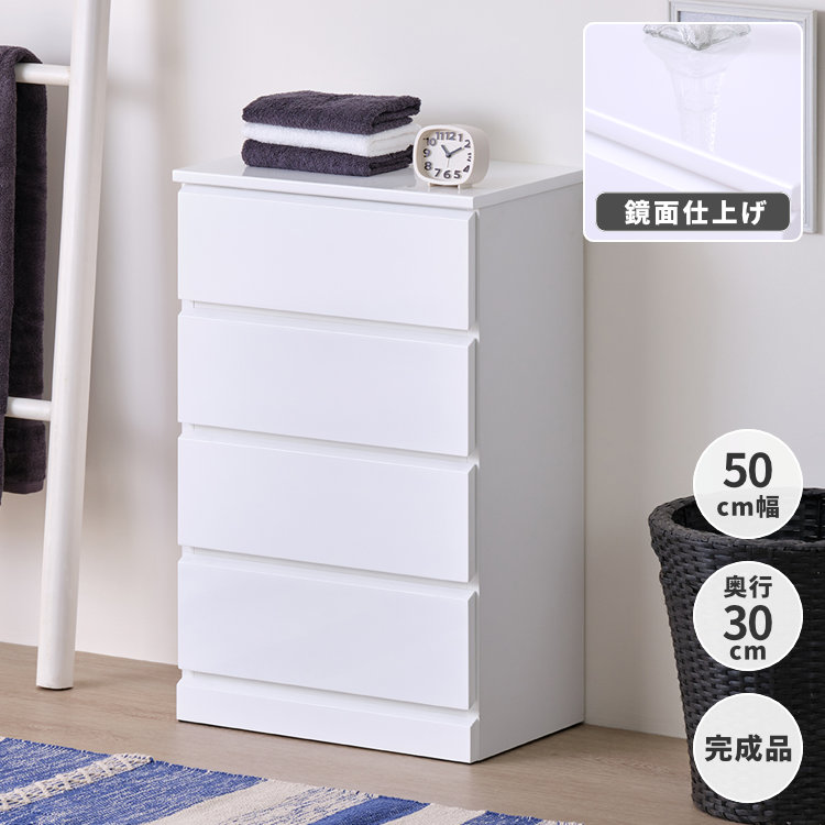 ■チェスト 4段 完成品 ランドリーチェスト スリム 幅50 奥行30 タンス ランドリー収納 洗面所 バスルーム サニタリー 衣類 タオル 洋服 収