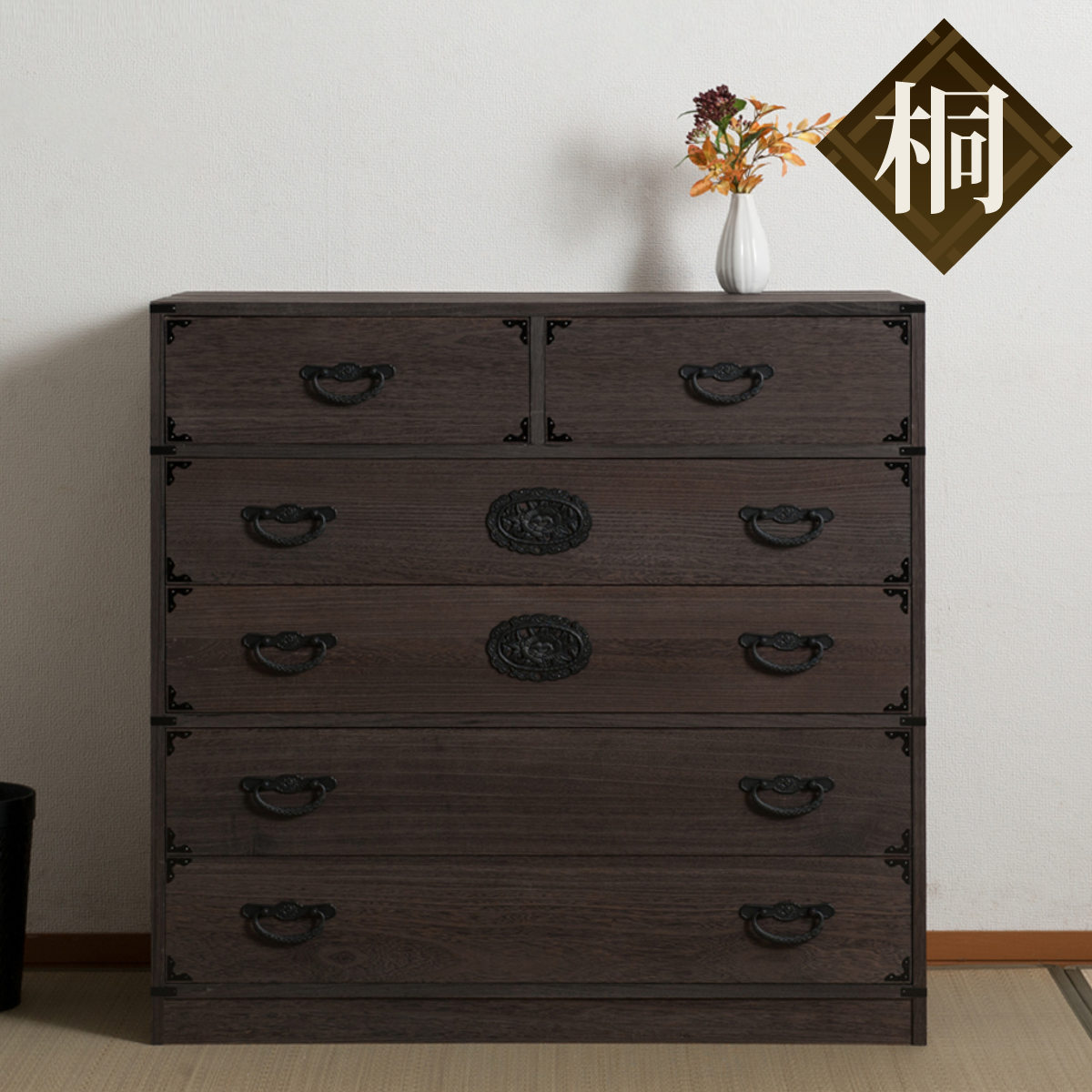 ■焼桐タンス 5段 民芸調 桐箪笥 日本製 幅100cm ( 桐タンス タンス たんす 箪笥 桐たんす 完成品 チェスト 桐 和箪笥 着物収納 国産 着物