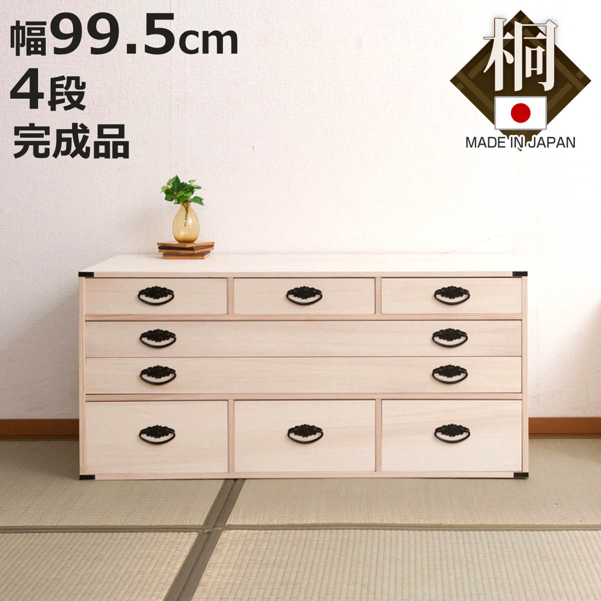 ■桐チェスト 幅99.5cm 4段 8杯 桐収納 引出し 日本製 ( 桐箪笥 収納 桐チェスト 国産 完成品 桐 たんす タンス 箪笥 積み重ね 桐衣装箱