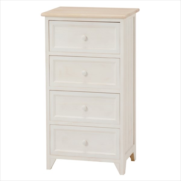シャビーホワイトの本体にアンティーク調ナチュラルな天板が映える、シンプルチェスト。