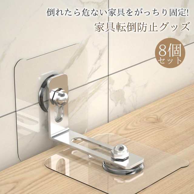 家具転倒防止グッズ 8個セット 穴あけ不要 防止グッズ 地震対策 耐震 転倒防止 固定金具 コーナーラック テレビラック タンス テーブル 冷蔵庫