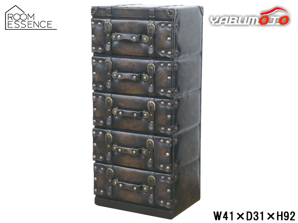 ■東谷 チェスト5段 ダークブラウン W41×D31×H92 IW-877 チェスト 収納 トランク 鞄 タンス 箪笥 整理 メーカー直送 送料無料